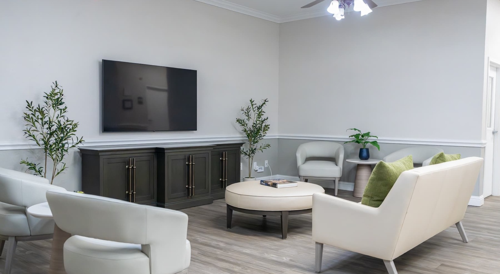 • a large room with a TV