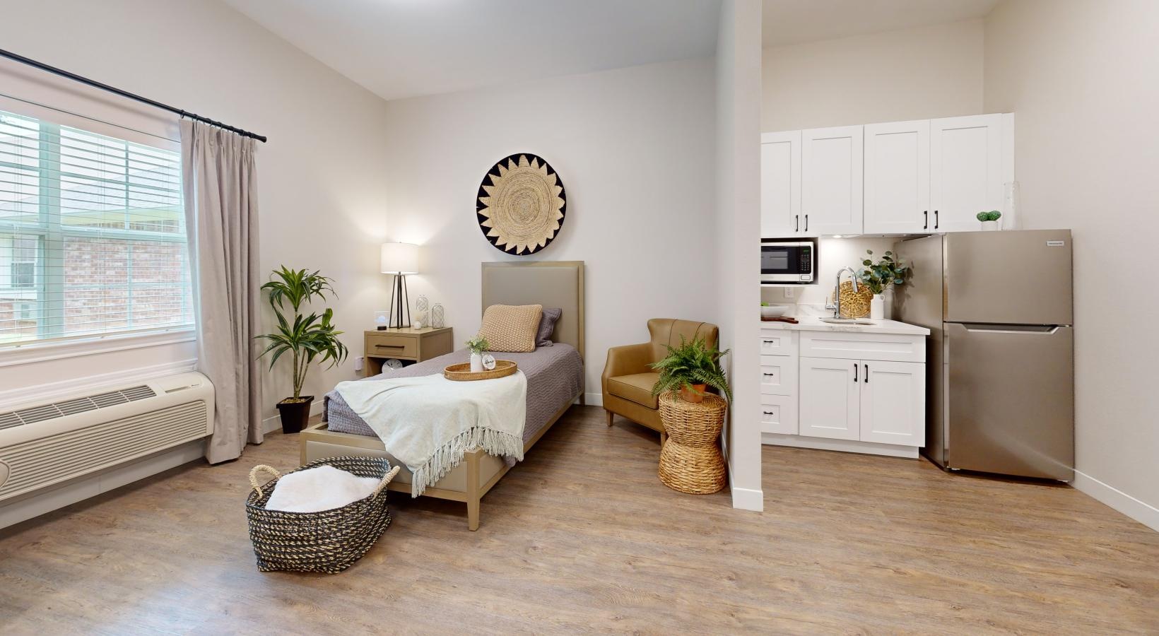 • a bedroom with a bed and a couch